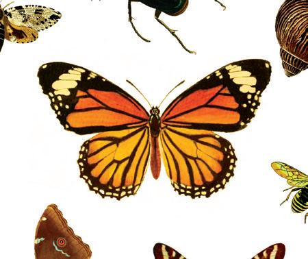Incluye flores, setas, pájaros, animales, una amplia diversidad de figuras y rostros, edificios y arte, todos a la espera de encontrar un hogar construido con collage