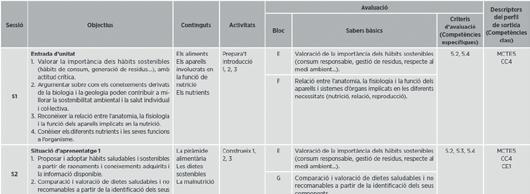 Per a cada unitat didàctica oferim: 1. la programació d’aula amb les competències específiques de cada sessió; 2. les rúbriques de les competències específiques associades a les evidències (activitats) de cada unitat, connectades amb els descriptors del perfil de sortida.