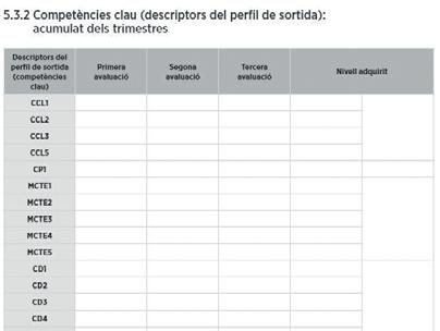 Els indicadors d’acompliment connecten les competències específiques i els descriptors del perfil de sortida.