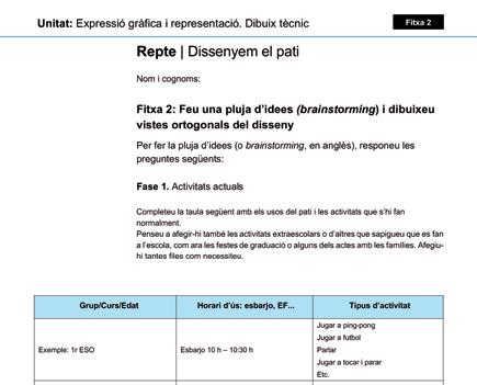 • Fitxes que ajuden i guien l’alumnat en l’execució de les activitats dels reptes. Es poden descarregar en format editable o imprimible.
