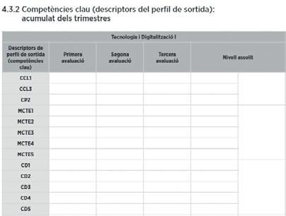Els indicadors d’acompliment connecten les competències específiques i els descriptors del perfil de sortida.