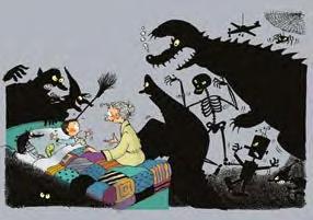 John is a quiet and cheerful boy during the day, but when night falls he is assailed by all kinds of fear. From his bed, he sees threatening shadows and terrifying creatures that vanish when his parents turn on the light. His grandmother will teach him to conquer his fear. Because… whoever said that darkness couldn’t be fun?