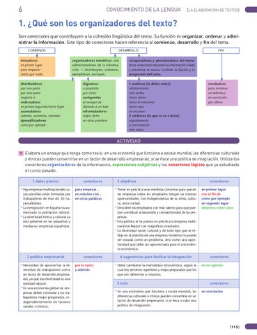 y étnicas pueden convertirse en un factor de desarrollo empresarial, si se hace una política de integración. Utiliza los conectores organizadores de la información, expresiones subjetivas y los conectores lógicos que ya estudiaste el curso pasado. 1 datos previos * Hay empresas multinacionales cuyas plantillas están formadas por trabajadores de más de 30 nacionalidades. * La inmigración en España ha aumentado la población laboral. * La diversidad étnica y cultural ya está presente en las pequeñas y medianas empresas españolas.