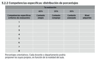 Evaluación de competencias específicas con una propuesta de distribución de porcentajes que permite una nota cuantitativa.