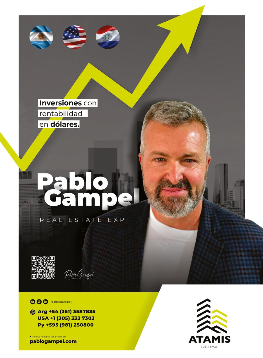 Pablo Gampel vivió en Estados Unidos donde creció profesionalmente como jefe de ventas de la desarrollista Miami Fortune International por 10 años. Es fundador de GMP Company desarrollista en Argentina. En la actualidad, desarrolla su marca personal como inmobiliaria global en mercados como Argentina, Estados Unidos y Paraguay.