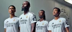 El Real Madrid presentó la camiseta de la temporada 2024-25, el primer modelo que lucirá el francés, Kylian Mbappé, con una previsión de ventas histórica, con un diseño minimalista que incluye un patrón de pata de gallo personalizado con las iniciales RM. Las franjas de los hombros regresan al negro.