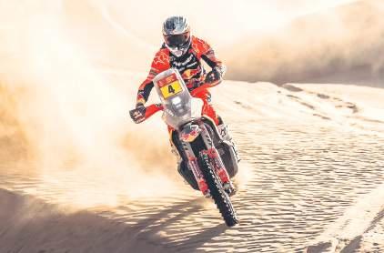Daniel Sanders, líder de la general de Motos. Carlos Sainz quedó fuera de carrera en la Etapa de 48 Horas.