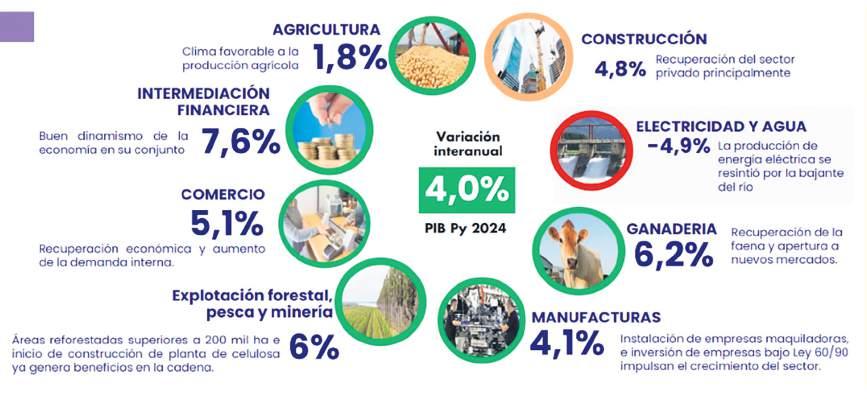 rios; uno relacionado con el crecimiento del país en un 4%, que es la tasa promedio normal que venimos manteniendo en los últimos años. Lo otro guarda relación con la concreción de obras prioritarias. El inicio de Paracel en Concepción, la puesta en marcha de alianzas público-privadas (APP) como la de puertos internacionales de Asunción, o el inicio de la duplicación de la Ruta 1, son algunas de ellas. Ferreira afirmó que, de concretarse esos proyectos, la tasa de crecimiento del 4% puede ir para arriba.