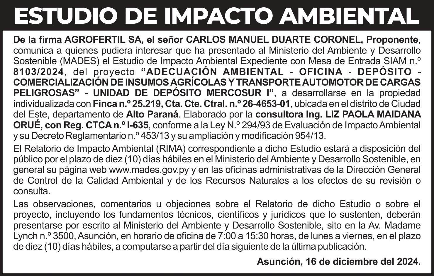 Más información publicidad@5dias.com.py 0982 456111