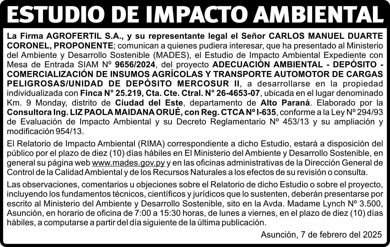 La Agencia Financiera de Desarrollo (AFD) presentó una nueva línea de crédito destinada a pequeños y medianos productores agrícolas y ganaderos, con un monto máximo de hasta US$ 500.000 o su equivalente en guaraníes. El financiamiento ofrece un plazo de hasta siete años y un período de gracia de un año, con el objetivo de aliviar la carga financiera de los afectados por la