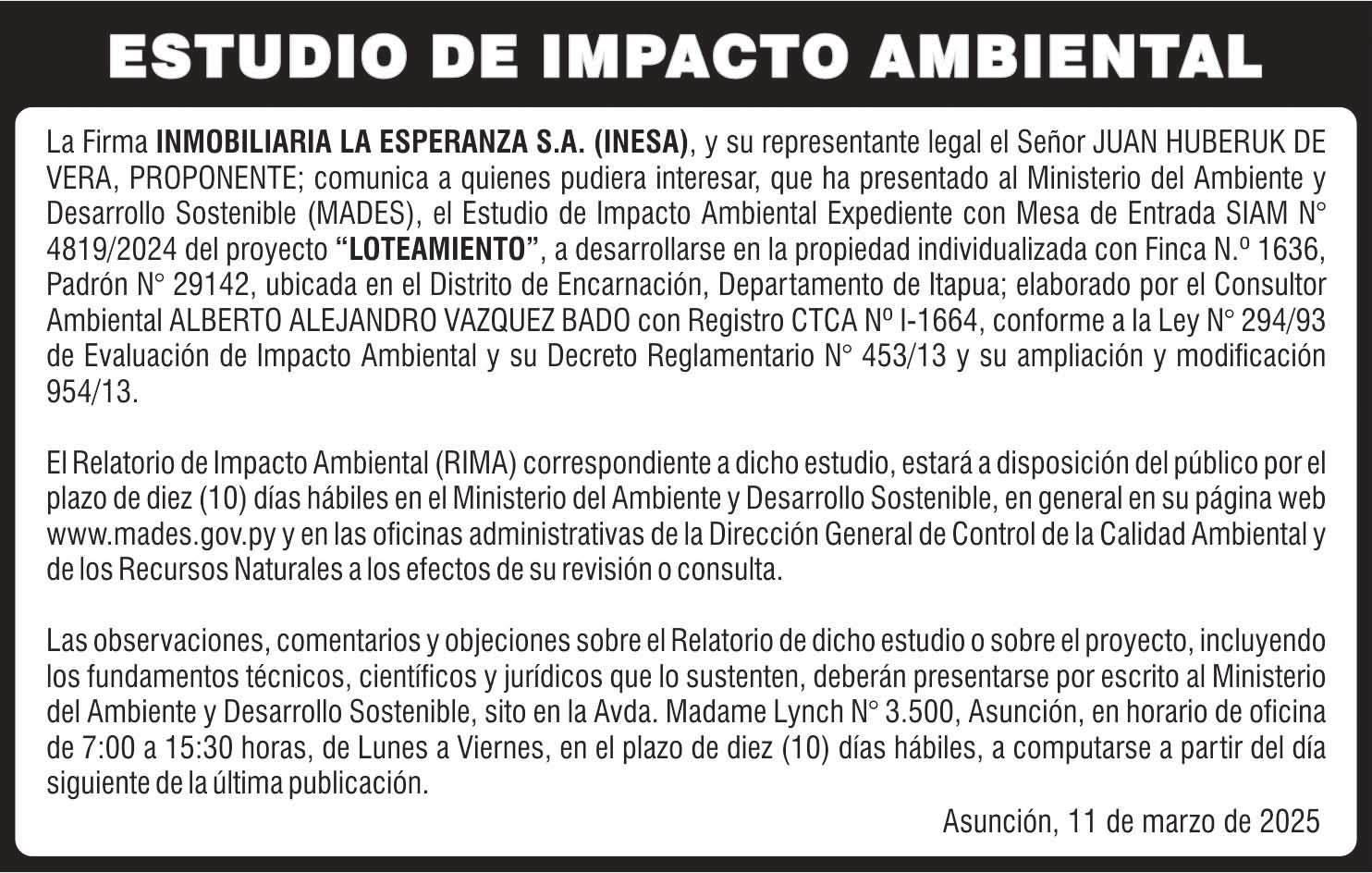 Estado paraguayo, busca complementar y redoblar los trabajos en curso bajo la aprobación y dirección de la Administración Nacional
