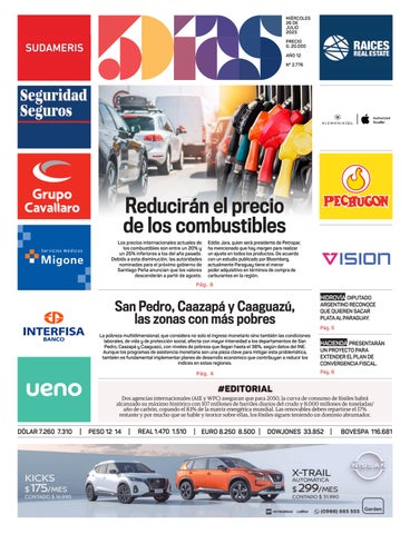 PESO 23 31 REAL 1.240 1.300 EURO 6.900 7.550 DOWJONES 32.396 BOVESPA 103.361 DÓLAR 6.830 6.890 | | | | | EURO PESO 14 17 EURO 8.230 8.430 BOVESPA 108.552 7.240 7.300 VIERNES 16 DE JUNIO 2023 PRECIO G. 20.000 AÑO 12 N° 2.748 PESO 12 14 REAL 1.470 1.510 EURO 8.250 8.500 DOWJONES 33.852 BOVESPA 116.681 DÓLAR 7.260 7.310 | | | | | MIÉRCOLES 26 DE JULIO 2023 PRECIO G. 20.000 AÑO 12 N° 2.776