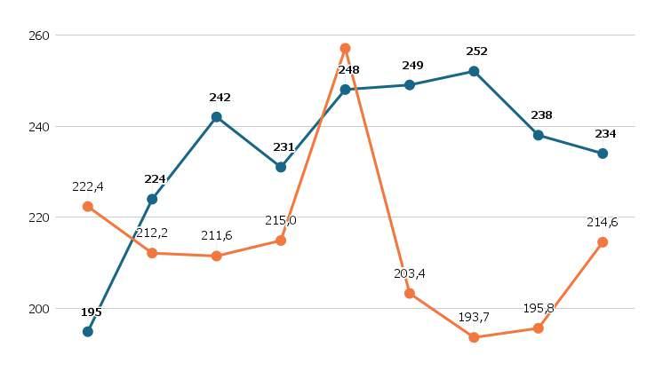 Por otra parte, de enero a setiembre hubo un descenso del 23 % en la cotización internacional. Se pagó 235 USD/tonelada, lo que significó una merma de USD 72, en comparación con el valor de USD 307 registrado hasta el noveno del 2023.