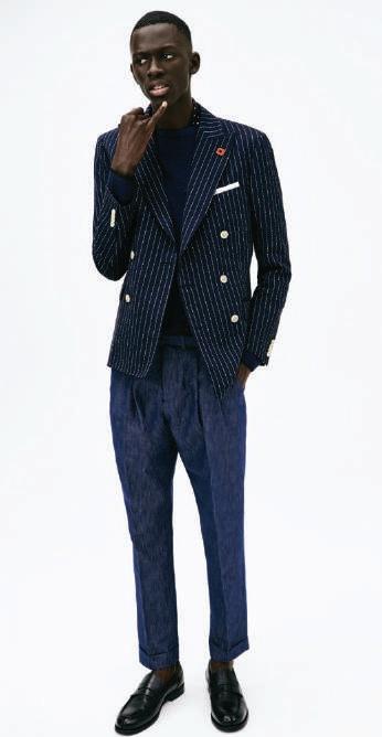 RESULTADO El resultado es una línea sofisticada, pero que se olvida de las rigideces de los trajes de invierno. colección está confeccionada exclusivamente con tejidos de calidad realizados por tejedores italianos e incluye jeans de verano en algodón, mezclas de lino y lana fina.