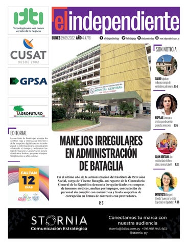 MANEJOS IRREGULARES EN ADMINISTRACIÓN DE BATAGLIA En el último año de la administración del Instituto de Previsión Social, cargo de Vicente Bataglia, un reporte de la Contraloría General de la República denuncia irregularidades en compras de insumos médicos, multas por impagos, contratación de personal sin cumplir con normativas y hasta sospechas de corrupción en firmas de contratos con proveedores.