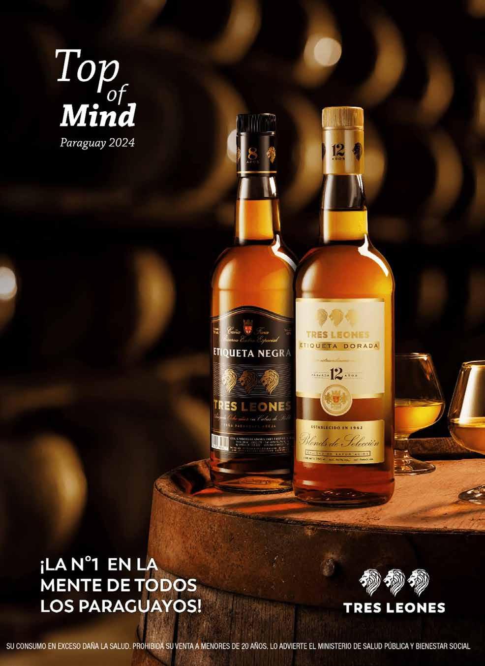 Tres Leones es sinónimo de la más insigne caña paraguaya, y como prueba de ello, ha conquistado nuevamente este año el premio Top of Mind, preciado reconocimiento de los más exigentes consumidores. La auténtica bebida nacional, la caña paraguaya, ganadora del Top of Mind por 13 años consecutivos, lleva el nombre de Tres Leones, haciendo justo honor a su slogan: Rey de Cañas.