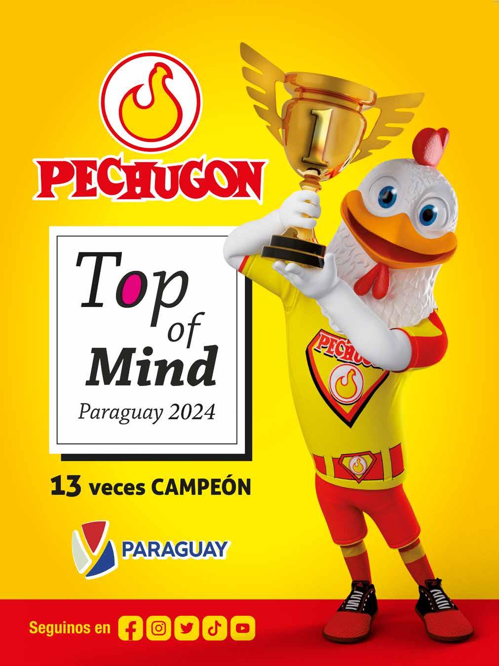 Por trece años consecutivos, Pechugón se consagra en la mente de los consumidores paraguayos en la competencia del Top of Mind 2024. La firma es pionera en producción avícola y no cabe duda que la calidad y el sabor de cada producto la llevó a ser la marca de pollos número uno de Paraguay.