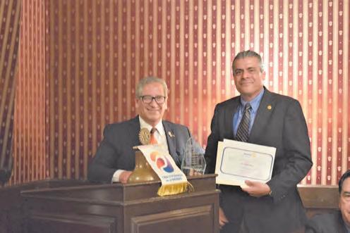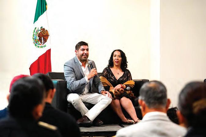 En su ponencia, el presidente municipal reiteró que uno de sus principales compromisos es for talecer a la Policía Municipal, primer respondiente en la mayoría de los hechos que se suscitan en la localidad. Por lo que, se han mejorado las pres taciones, la profesionalización, equipamiento e infraestructura.