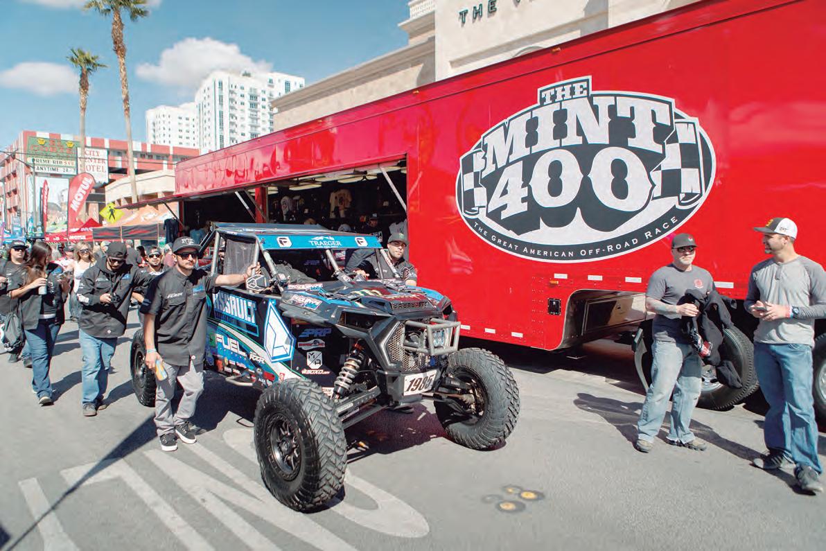 na arrancará la revisión mecánica de la Mint 400 en la Calle Fremont, evento abierto a todo el público y que permitirá a los aficionados el tomarse fotos con sus carros favoritos, al igual que con los pilotos.