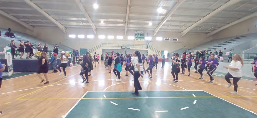 Catalina Rochin, Anya L. Ozuna, Alondra Mendoza, Sofía Soto Acuña, Brenda Cas tillo Flores, José Martín González, Rosalba Cossío Salas, Janeth García y Claudia Va nesa Carreón, fueron las instructoras que motivaron y encendieron el gimnasio con varios ritmos musicales.