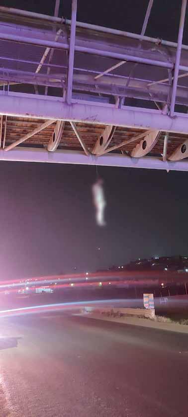 llo de la víctima y la otra punta atada a la estructura metálica del puente peatonal; el cadáver
