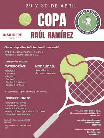 El Gobierno de Ensenada que preside el alcalde Armando Ayala Robles, convoca a la comunidad tenista a participar en la Copa “Raúl Ramírez”, la cual es organizada por el Instituto Municipal del De-