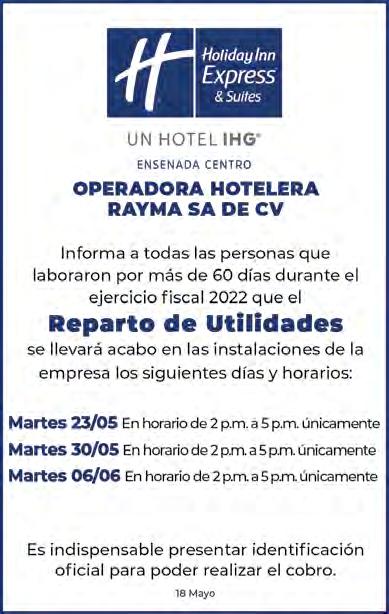 WEB elvigia.net Costo $10.00 pesos www.elvigia.net Ensenada, B. C. VIERNES 19 de mayo de 2023 Desde 1985 36 págs. 9 secciones Publicación diaria II Época, no. 7156