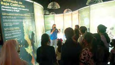 En otra pecera se muestra la importancia de la producción de alimentos marinos de la región, con organismos como el abulón rojo; además, contiene cuatro interactivos de fauna marina, entre ellos una estación de realidad virtual.