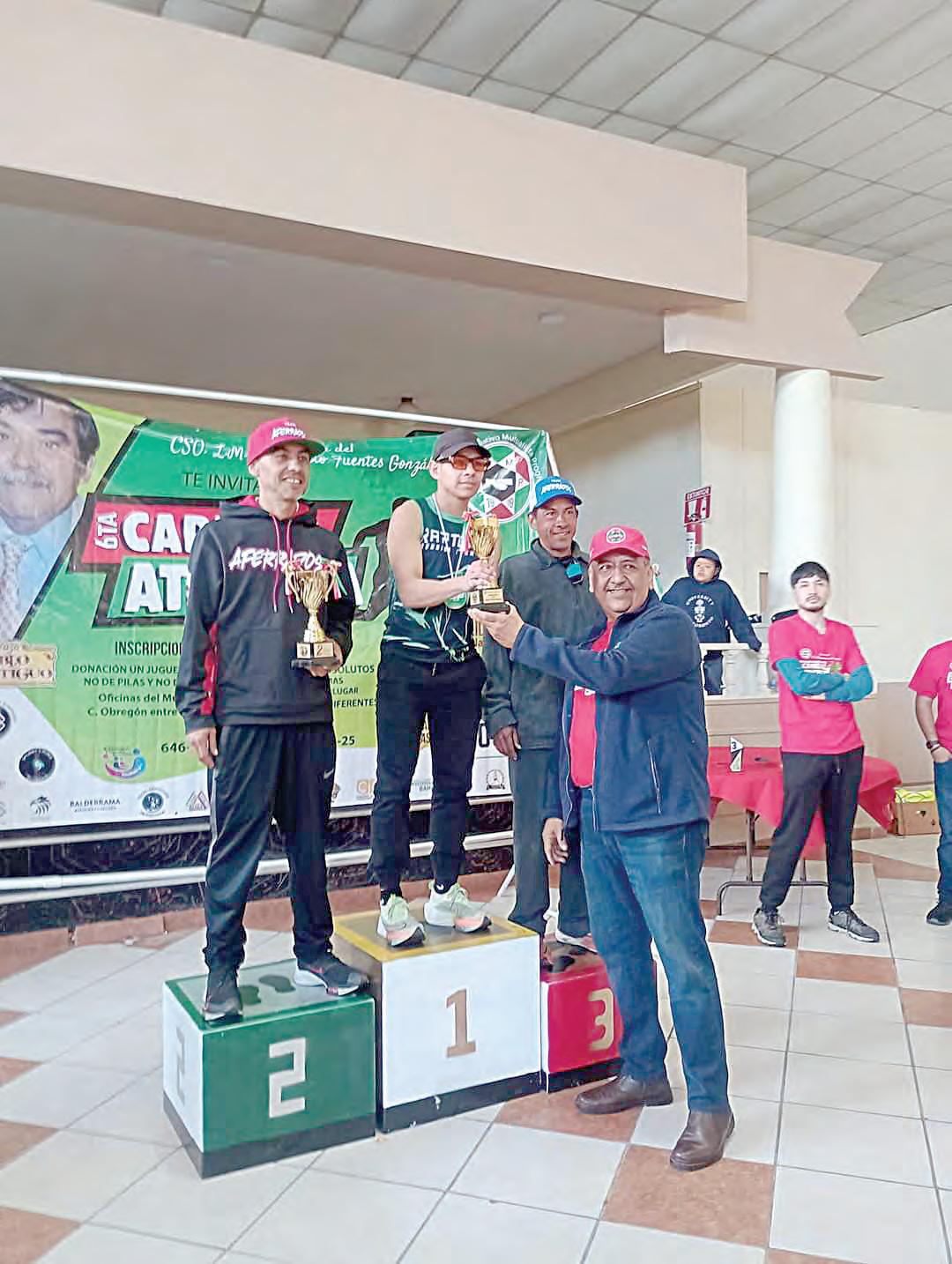 A las 9 de la mañana se realizó la premiación con trofeo a los primeros tres ganadores absolutos en ambas ramas, y a los tres primeros consocios en cruzar la meta, medalla a los tres primeros ganadores de la categoría de dis-
