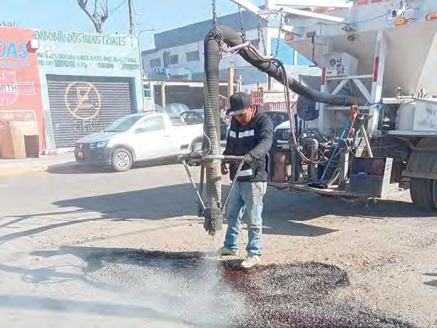 pavimento con concreto asfáltico en caliente. Con el mismo procedimiento se visualiza a la calzada Cortez, entre calle Tercera y calle Quinta de la colonia Maestros, así como el bacheo de vialidades en el fraccionamiento Punta Banda.