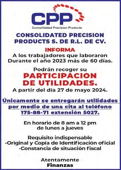 Las personas interesadas, favor de comunicarse al teléfono (646) 1723080, extensión 3317, de lunes a viernes y de 8:00 a 16:00 horas.