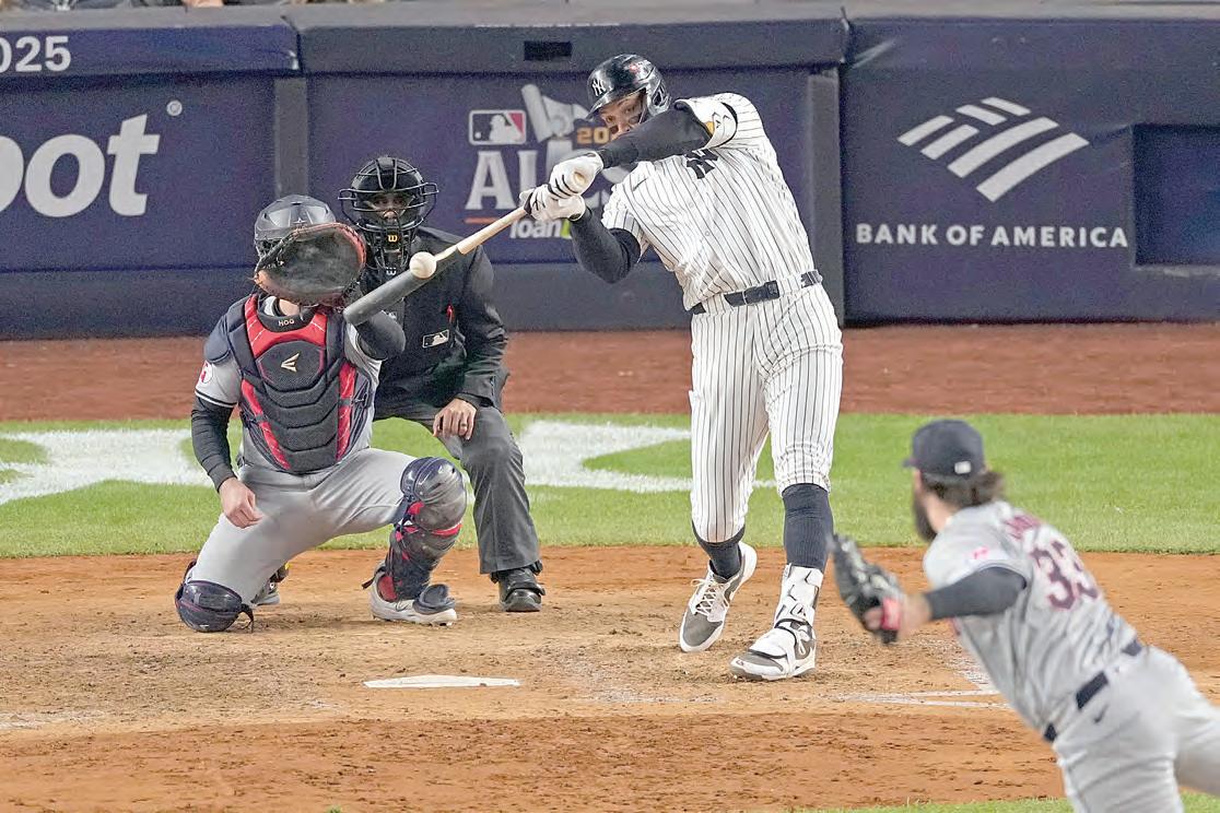 Aaron Judge depositó la pelota en el Monument Park al conectar su primer jonrón de esta postemporada, y los relevistas de los Yanquis de Nueva York volvieron a lucirse para una victoria 6-3 sobre los Guardianes de Cleveland que les dejó arriba 2-0 en la Serie de Campeonato de la Liga Americana.