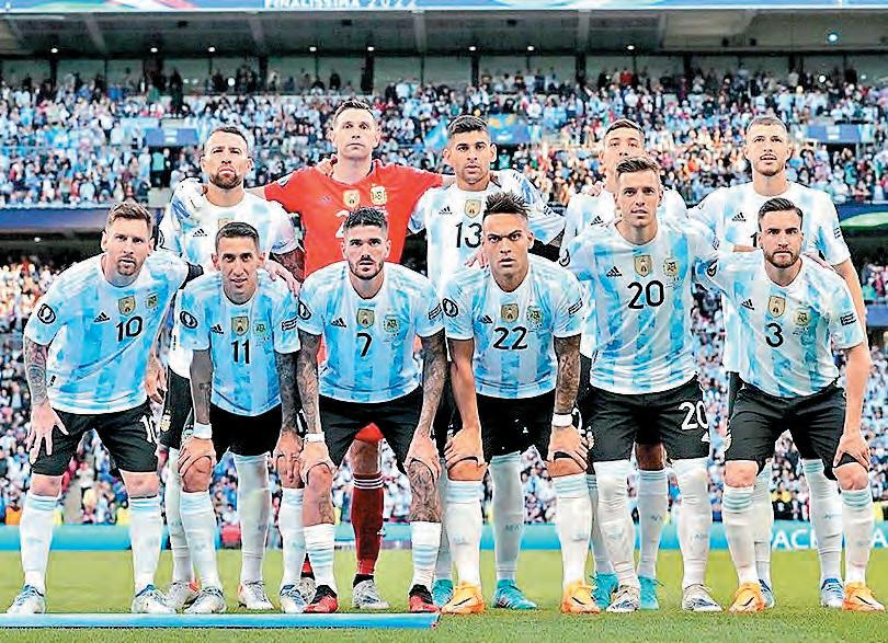 las Co pas del Mundo SU RETO EN QATAR GRUP O C SU ONCE TIPO ‘LA ALbICeLeste’ EN REdES @afaseleccion AFA - Selección Argentina @Argentina MUNdIAlES gANAdOS 2 (1978, 1986) SU UNIFORME MArcA: ADIDAS mUNDiALEs jUgADOs: 17 1930 SC 1934 OF 1938 1950 1954 1958 PF 1962 PF 1966 CF 1970 1974 SG 1978 C 1982 SG 1986 C 1990 SC 1994 OF 1998 CF 2002 PF 2006 CF 2010 CF 2014 SC 2018 OF 81 Partidos ha disputado en Mundiales 43 Victorias tiene en Mundiales, por 15 empates y 23 derrotas 137 Goles ha anotado en Mundiales por 93 recibidos 3 Es su posición en el Ranking FIFA SU CAlENdARIO ArAbIA SAuDItA 22/11, 04:00 h MéxIco 26/11, 13:00 h PolonIA 30/11, 13:00 h CLAVE: PF.- Primera Fase, SG.Segunda Fase, OF.- Octavos de Final, CF.- Cuartos de Final, SF.Semifinales, 3L.- Tercer Lugar, SC.- Subcampeón, C.- Campeón