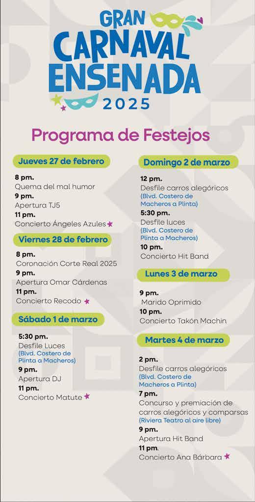 Con el objetivo de salvaguardar la integridad física de las y los asistentes locales, nacionales y extranjeros, la Coordinación Municipal de Protección Civil, pondrá en marcha un operativo durante los seis días de festejos del Gran Carnaval Ensenada 2025. El titular del área, Julio César Obregón Angulo, precisó que el operativo contem-
