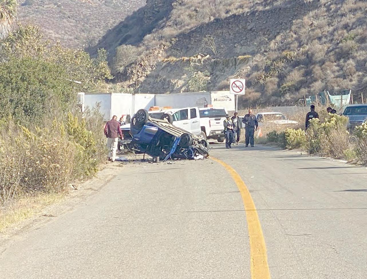 El choque de frente y volcadura ocurrió poco antes de las 02:30 horas de ayer sobre la carretera libre que conduce de Ensenada a Tijuana, en las inmediaciones del kilómetro 94, en Cíbolas del Mar, correspondiente a la delegación El Sauzal