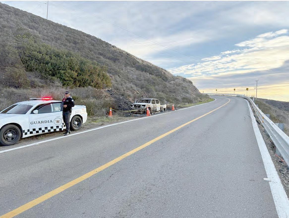 La camioneta incendiada fue abandonada a la altura del kilómetro 88 de la carretera libre Ensenada-