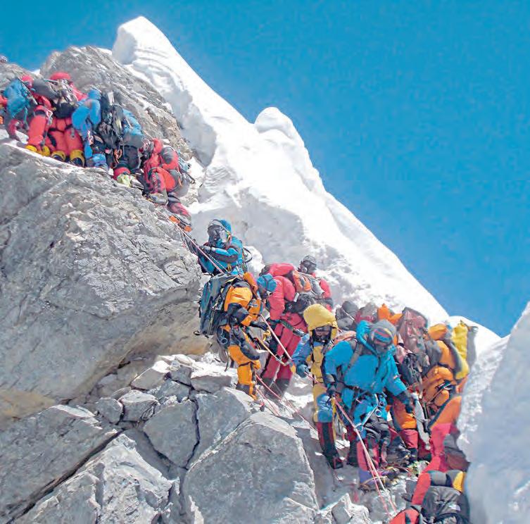 al Everest, la montaña más alta del mundo, la que cada año es asediada por cientos de turistas, ojo: por turistas, no por montañistas.
