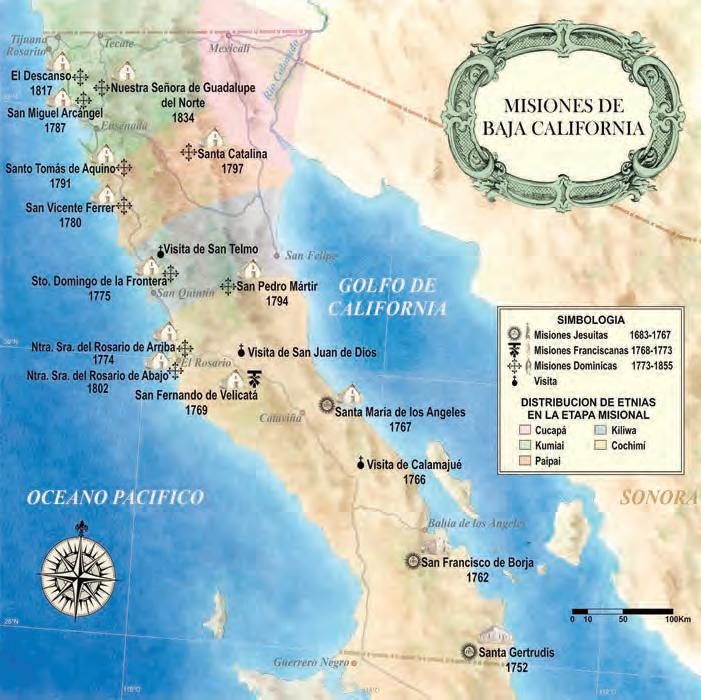 variable, desde la de Loreto, en 1697, hasta la de Nuestra Señora de Guadalupe del Norte, cuya fundación fue en 1834. El trabajo misional dejó de realizarse en 1855, con la partida del dominico Gabriel González. La cronología señala las misiones fundadas durante cada una de las etapas en las que las tres órdenes estuvieron en la península.