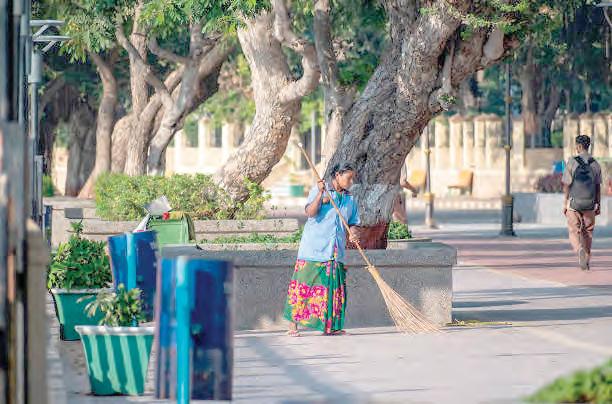 —“No. Me gusta” –se detiene, se apoya en su escoba y me mira–.“Sí, me gusta. Hago ejercicio. Pienso. Me fijo que todo quede bien limpio. Me gusta ver que después que yo pasé con mi escoba, todo está mejor, se ve mejor. Y eso lo hago yo, para que los que pasen caminando se sientan mejor”