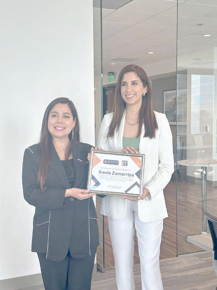 Entrega de reconocimiento a Kenia Zamarripa vicepresidenta de Asuntos Binacionales y Asuntos Públicos por parte de Kennya Vargas, directora ejecutiva de Copreen.