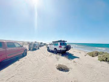 contacto con algunos de los campos pesqueros que se encuentran en ella, los más importantes son El Queen y Malarrimo, habitados por unas pocas familias y parte de la cooperativa de Bahía Tortugas. Mucho disfrutamos de la soledad y la belleza de la costa, de las pláticas al calor de la fogata y de los cielos nocturnos llenos de estrellas. Es una maravilla acampar en sitios donde no se ven hoteles, ni casas, ni nada por el estilo, más que naturaleza. Y más haciéndolo con grandes amigos que nos une el amor por nuestra geografía, nuestros espacios naturales y nuestra historia. Nos tocaron bellos atardeceres, así como vientos suaves que venían del norte. Desde luego, gracias a los pescadores con los que nos entrevistamos pudimos disfrutar de langostas asadas, abulón, almejas chocolatas, ceviche de jurel y jurel asado, entre otras delicias.
