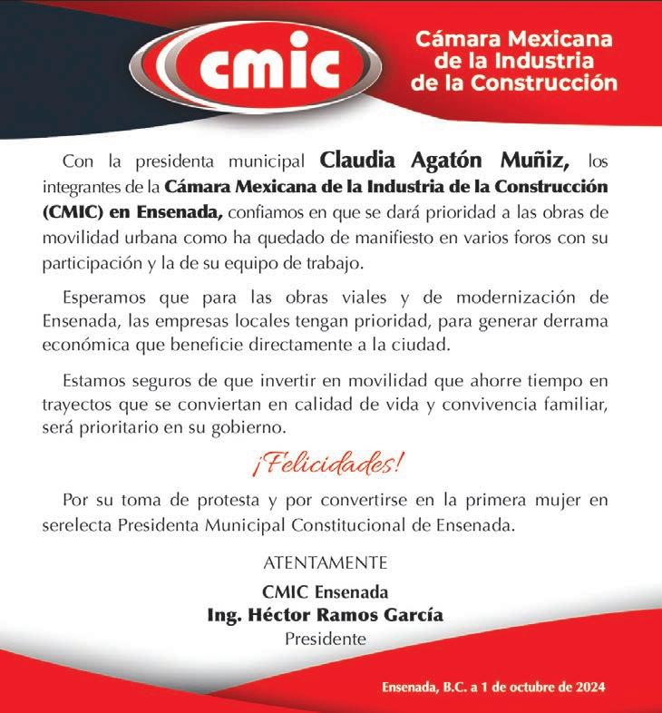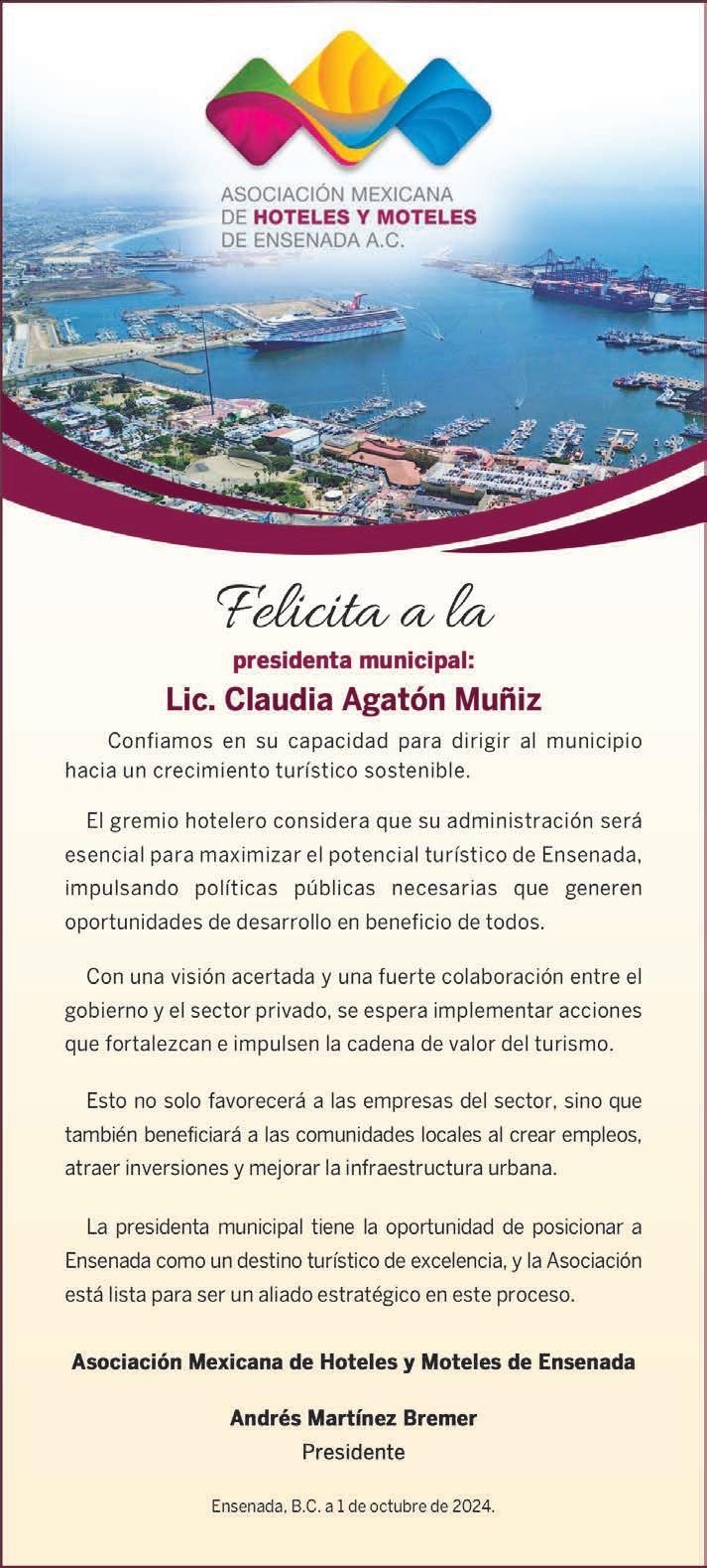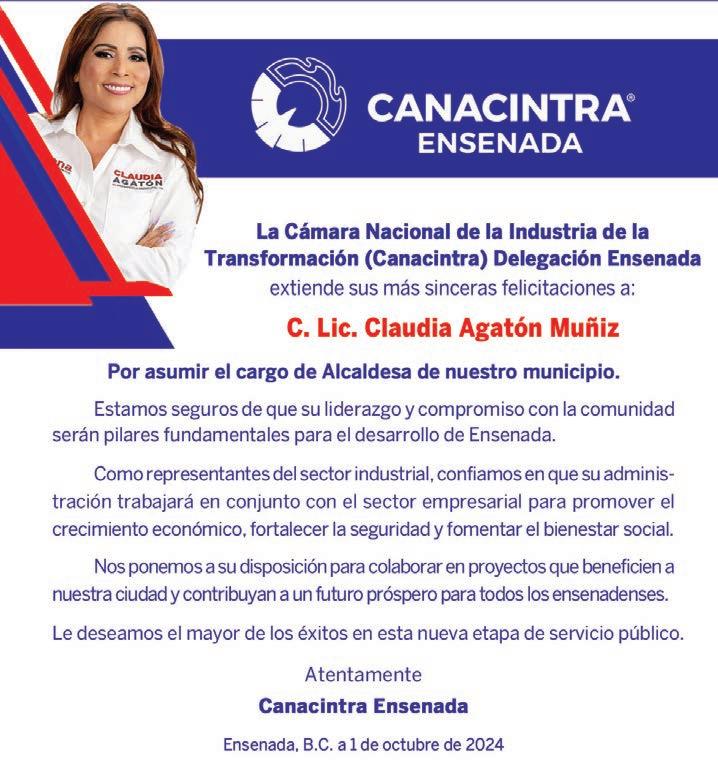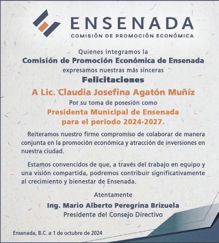 El Consejo de Desarrollo Económico de Ensenada espera que la nueva alcaldesa de Ensenada, Claudia Josefina Agatón Muñiz, logre cumplir la meta de reducir a la mitad los tiempos de entrega de diversos trámites, tal como planteó durante su campaña la también nueva presidente de México, Claudia Sheinbaum Pardo.