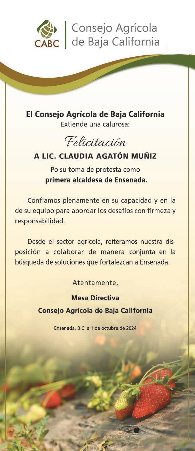Ayer lunes rindieron protesta los integrantes del nuevo Cabildo de Ensenada, el cual entró en funciones a partir del primer minuto de este martes primero de octubre, siendo la primera vez que se asume en este mes, pues anteriormente los gobiernos municipales iniciaban el primero de diciembre. Los integrantes del nuevo Cabildo de Ensenada para el periodo 2024-2027 son: Claudia Agatón Muñiz, presidenta municipal, Eli Oviedo Diaz, Síndico Procurador y el cuerpo de regidoras y regidores está integrado por Ana Lara Carvajal, Raquel Manríquez Peña, Marcela Valdez Melgoza, Mónica Primero Escobedo, Brenda Mendoza Kawanishi, Isaías Bertín Sandoval, Armando Díaz Hoeflich, Iván Salazar Palma, Gandolfo García Galicia, Jorge Eduardo Vega Zamora, Adrián García García, Ana Daniela García Salgado y Jaqueline Izabal Bitterlin.