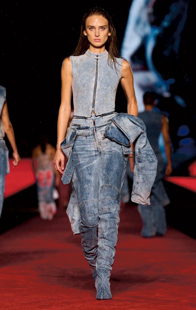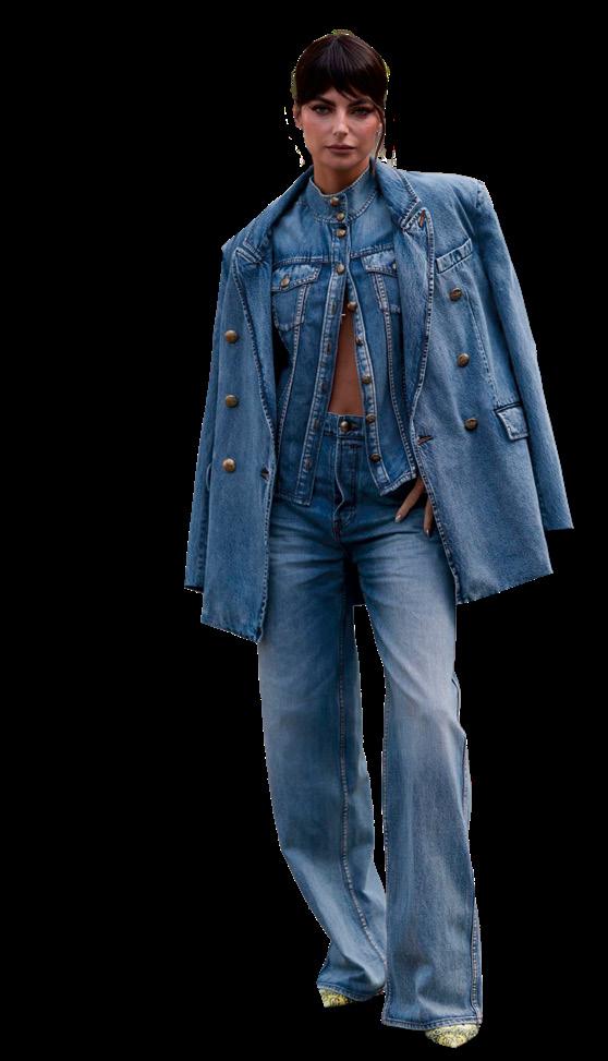 El denim nunca falla. Esta vez, oversized y doblado en la cintura para reinventar el icónico “ total denim look”.