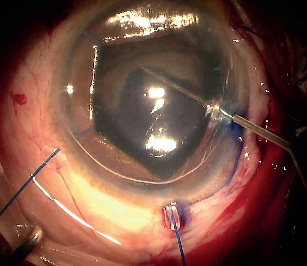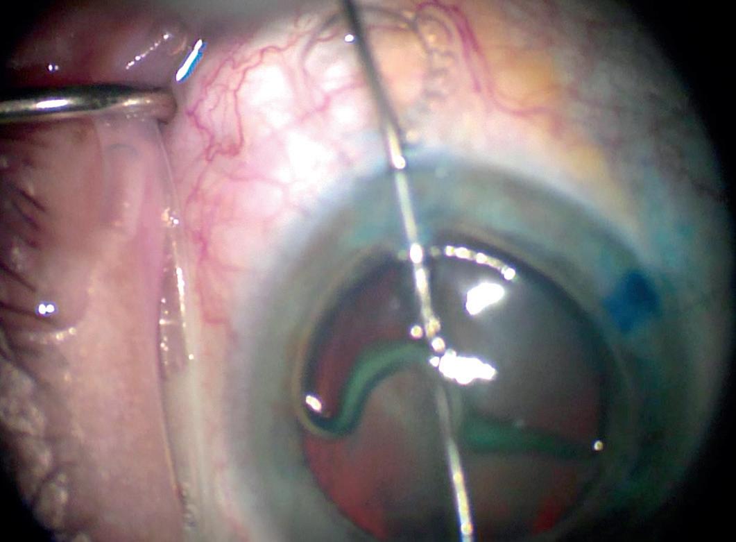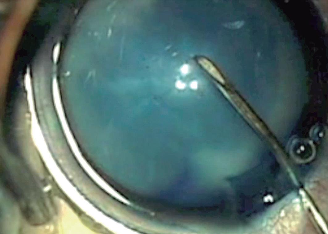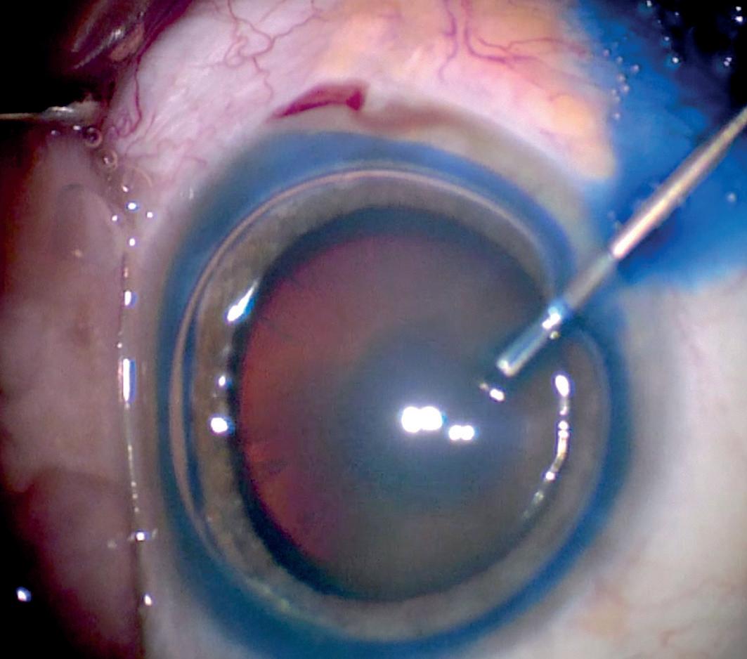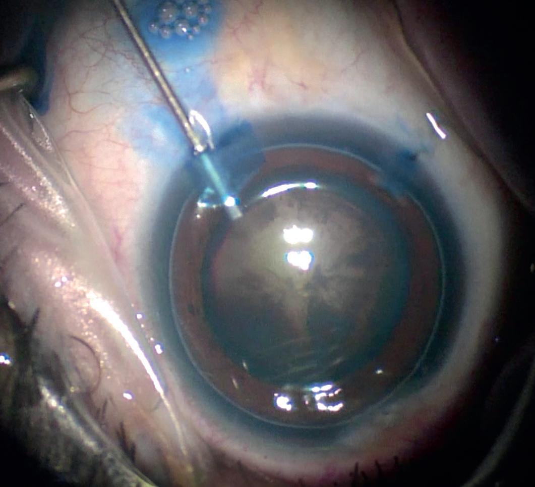 También es posible teñir la cápsula cargando en la misma jeringa el aire y el azul de tripano para ahorrar pasos, así como inyectar el colorante por una paracentesis, seguida de la liberación de acuoso para disminuir el volumen de la cámara anterior provocando un bloqueo pupilar, y así permitir un mayor contacto entre el azul de tripano y la cápsula anterior.4-5