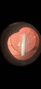 propósito y reportó la “painting technique la cápsula anterior.8 Un aspecto potencialmente negativo es que el viscoelástico mezclado con el azul de tripano podría dificultar la visibilidad, de manera que se puede intercam biar el viscoelástico teñido con nuevo viscoelástico una vez que la cápsula anterior ya ha sido “pintada”.