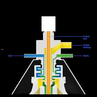 Gracias al nuevo sellado hidrohermético GEA Twin, se proporciona una reducción considerable de la entrada de oxígeno del producto descargado. Dos discos hidroherméticos se unen al tubo de alimentación y se sumergen en el líquido giratorio que funciona como líquido de sellado. Esto conduce a que no haya captación de O2. El sellado no se desgasta y se reduce el consumo.