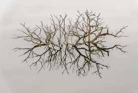 La arboleda traída al primer plano, ante un fondo difuminado, propicia el misterio sobre lo que habrá detrás, y nos invita a asomar la mirada tras ella, entre las ramas, como se filtran los rayos de luz que respetuosamente acarician el perfil de los troncos y se posan en algunas hojas.