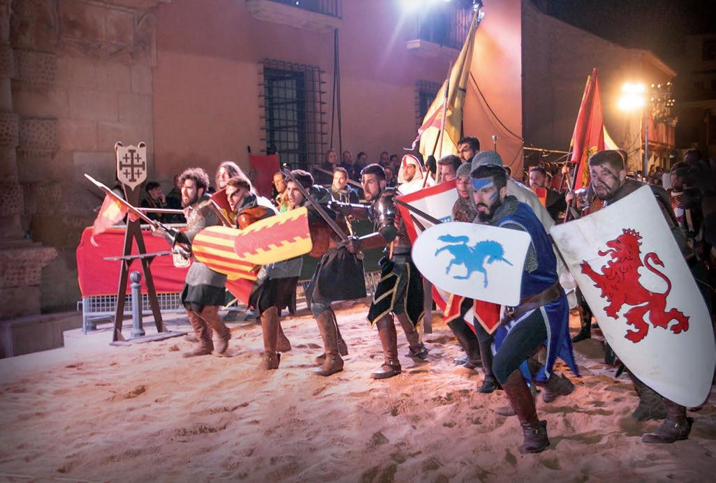 Los grupos participantes, divididos en los bandos moro y cristiano, y los diferentes actos que desarrollan como entradas, embajadas, dianas y conversión del moro, ya nos explican de manera sucinta una época de enfrentamientos entre dos mundos, entre dos culturas, la convivencia y la lucha entre las Hispanias musulmana y cristiana durante la Edad Media. Pero si nos centramos en las Embajadas y el acto de la Conversión del Moro, y particularmente en los textos desarrollados por Salvador Hernández Martínez, podemos dibujar de un modo más preciso ese contexto histórico que las fundamenta, el s. XIII y el proceso de conquista desarrollado por los principales reinos cristianos de la península ibérica sobre los territorios restantes de al-Ándalus, tras las batalla de las Navas de Tolosa de 1212. Un proceso largo y complicado, de competencia entre las coronas de Aragón y Castilla por controlar el reino musulmán de Murcia y otros territorios del sureste, y que culmina con el establecimiento de una frontera en nuestras tierras entre dichos poderes, y la creación del Señorío de Villena con la dinastía de los Manuel, tras un potente plan de repoblación con gentes venidas del norte peninsular.