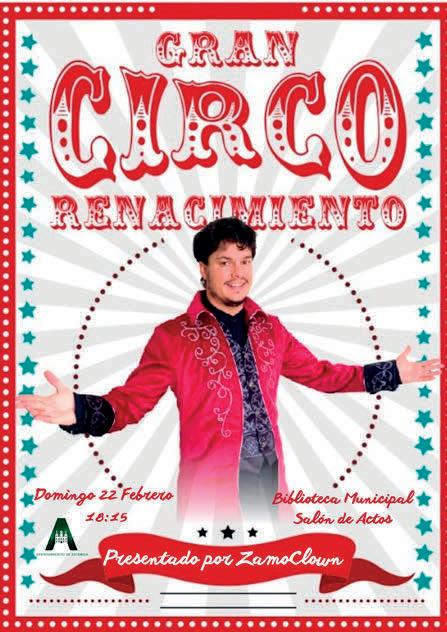 18:15 h. Gran Circo Renacimiento, presentado por ZamoClown. Salón de actos de la Biblioteca Municipal. Entrada libre hasta completar aforo.